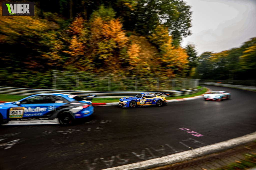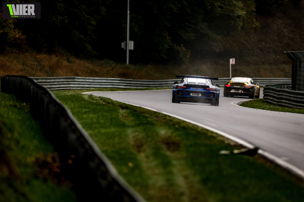 Eifelwetter, was the correct way to describe the situation.. it wasn't really raining.. it wasn't really dry.. there were leaves and slippery mistsprays all around the Track.. sometimes it was thick as in a Sauna, but when the Spray way gone it was a dry Racing line imediately. So Tyre Management and choice was a major deciding Factor in every class.